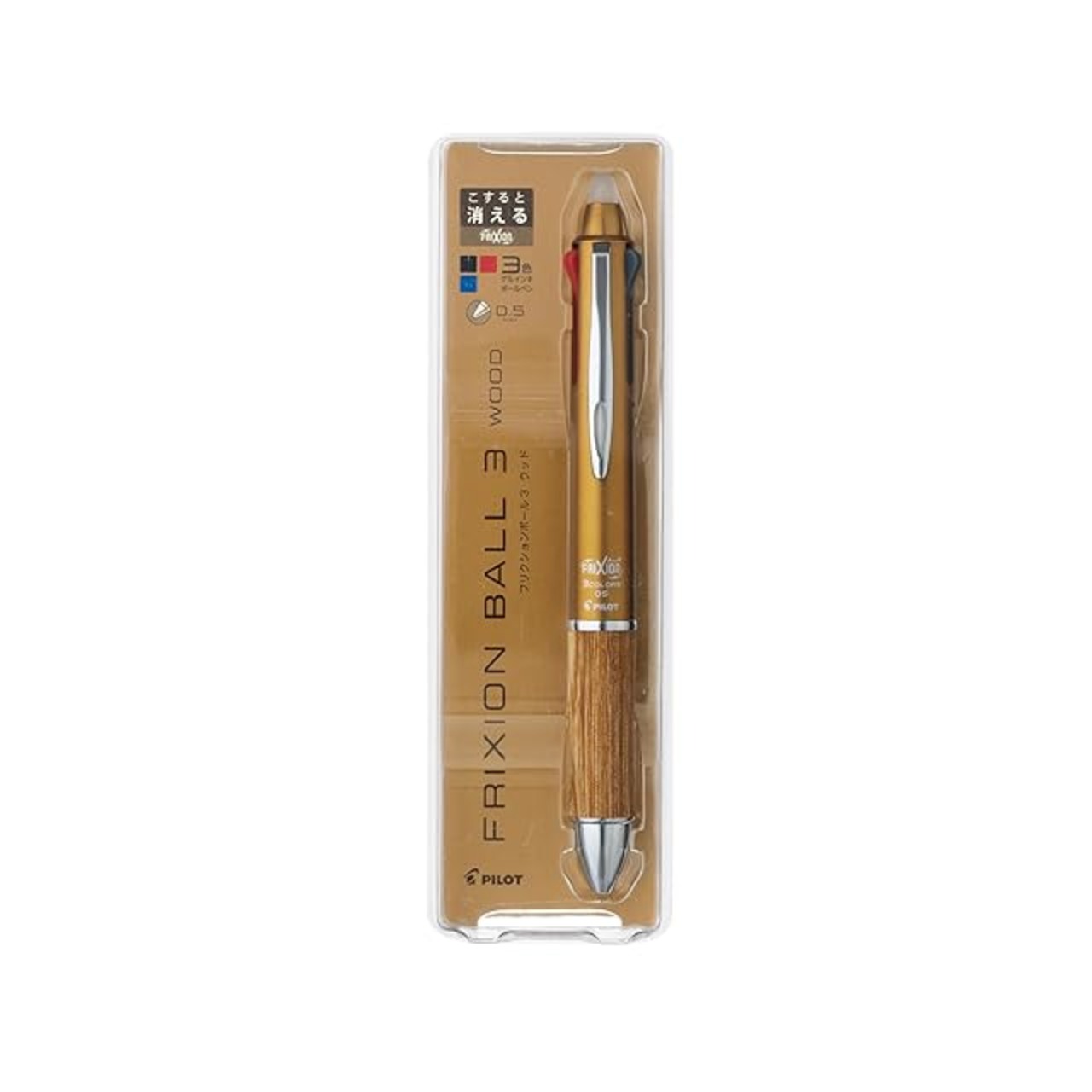 【軸デザイン】木の質感を楽しめるハイクラスのフリクションボール3【インク色】黒・赤・青