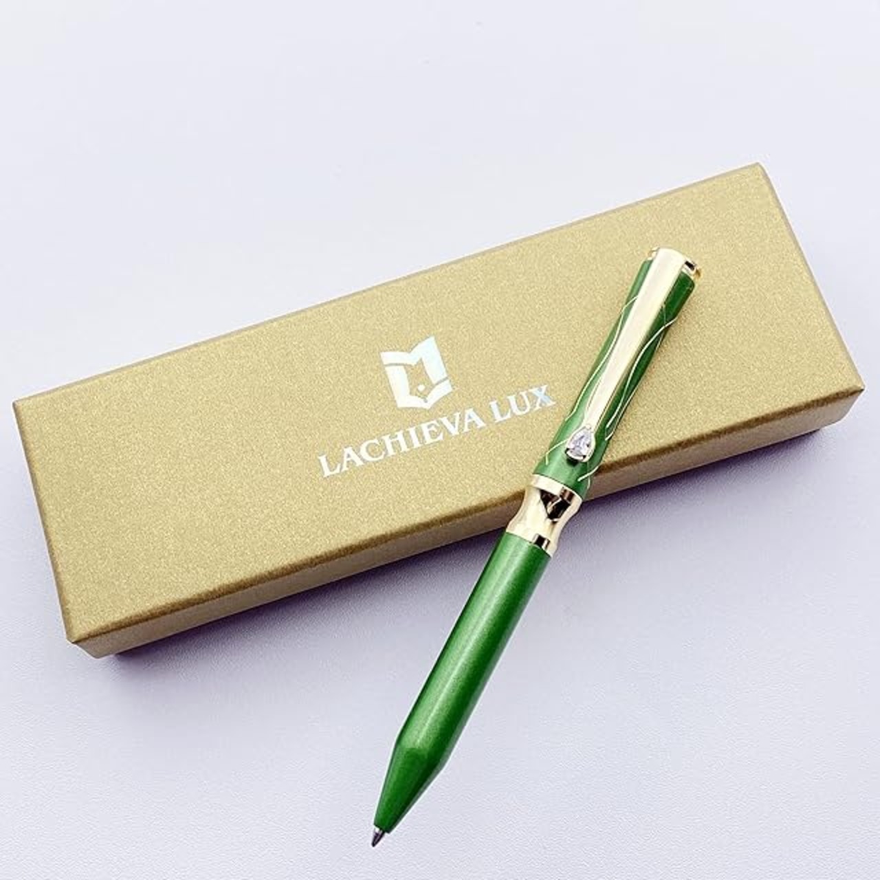 LACHIEVA LUX(ラチエバラックス) 素敵グリーン エレガント クリスタル エグゼクティブメタル ボールペン ドイツ製 P900Mリフィル付き 豪華でハイエンドな筆記具 女性用 グリーン