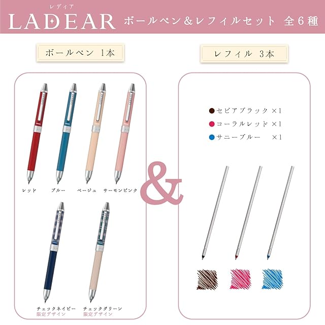 【インク色】セピアブラック、コーラルレッド、サニーブルーの3色。手帳の紙色にも合うこだわりのインク色