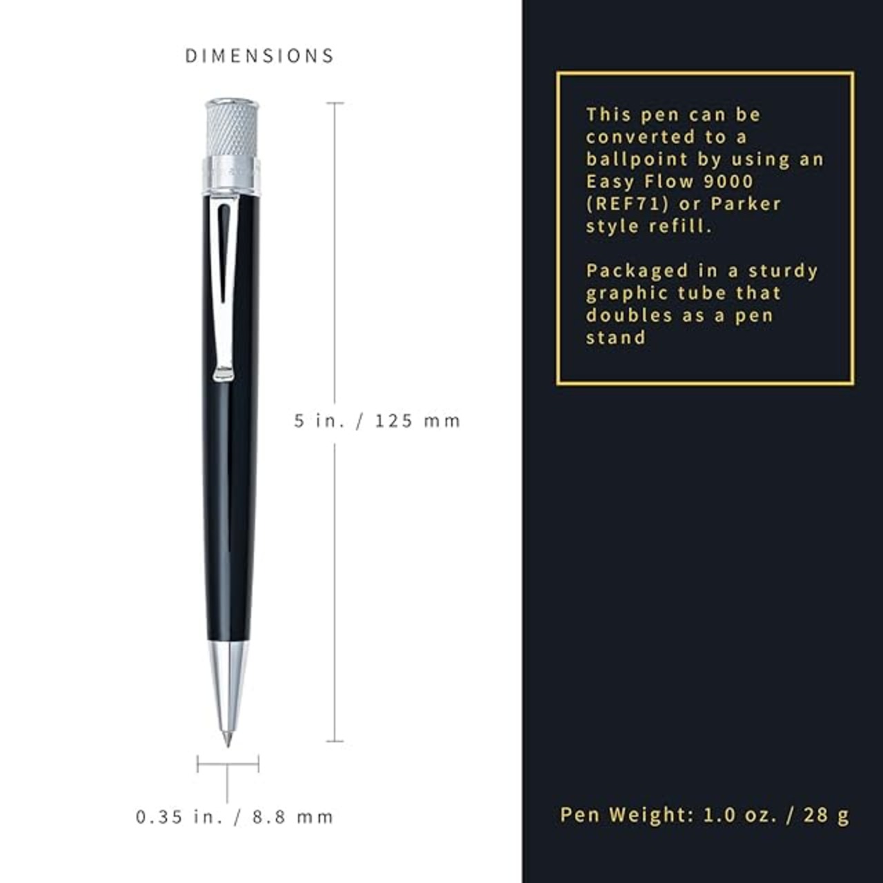 イージーフロー9000(REF71)またはパーカースタイルのリフィルでボールペンに変換できます。