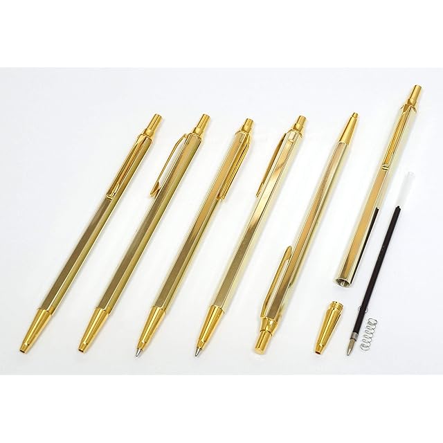 タキザワ 日本製 Z66全身ゴールド 6角ノック金属ボールペン 2本パック 金 P6-Z66KB-2