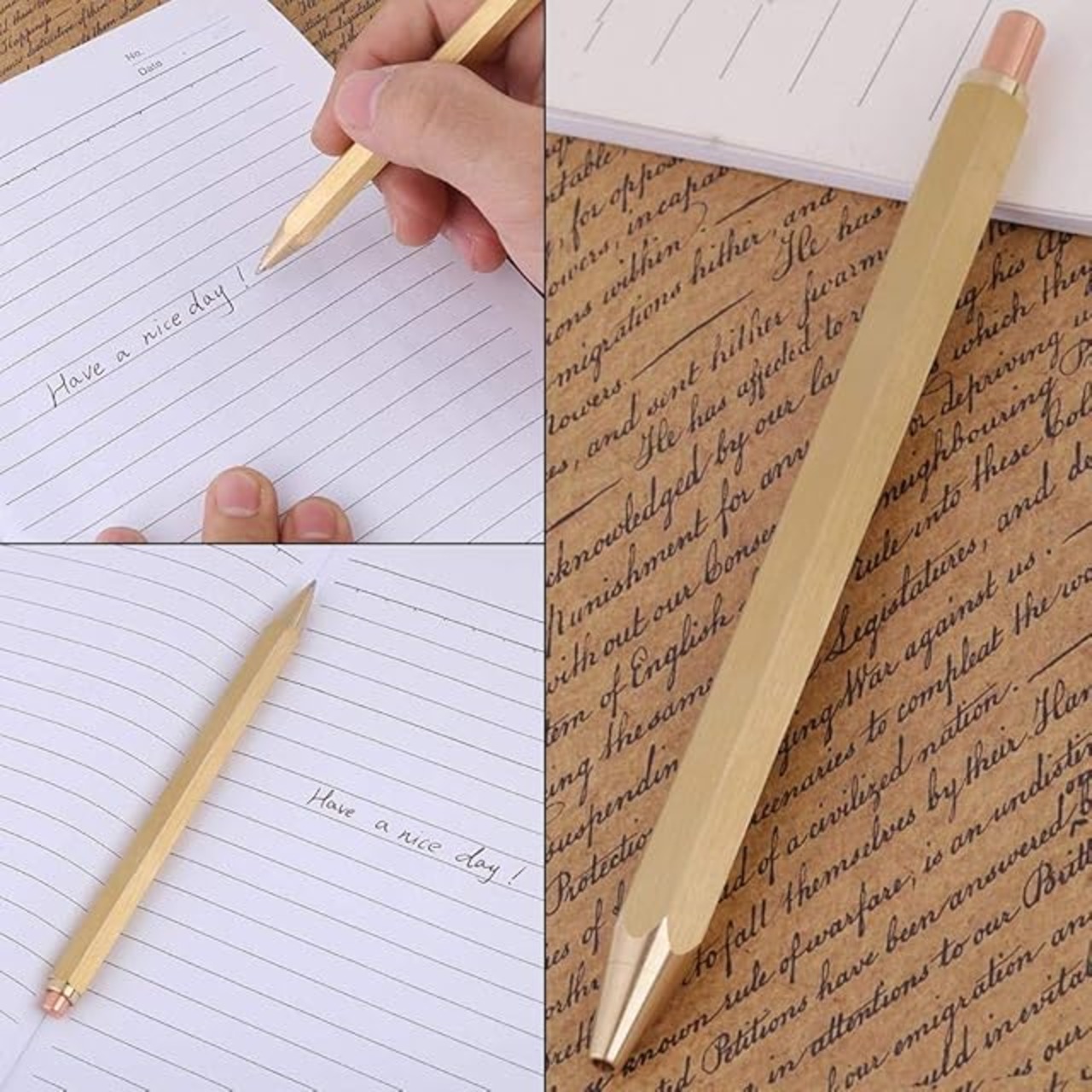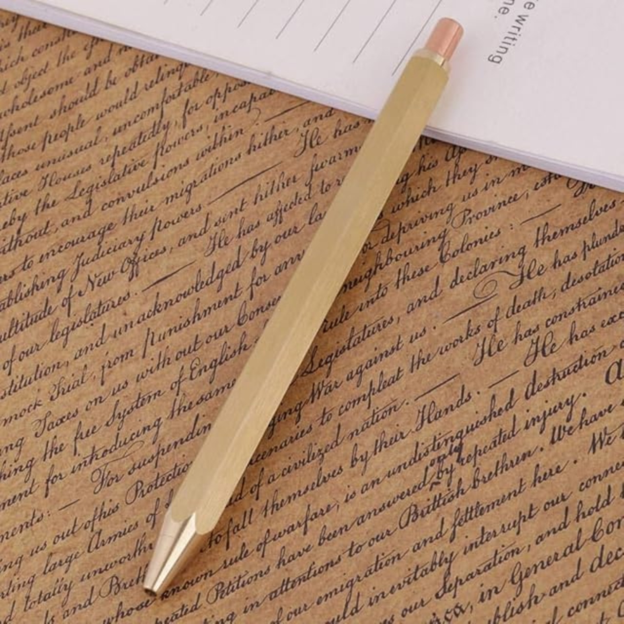 非滑りデザイン.: 金色の六角柱形状のデザインは、手にしっかりとフィットすることで書きやすさを提供します。真ちゅうの素材は、適度な重さとバランスを持ち、書くたびに手元を安定させます。また、手触りも滑らかで快適です。