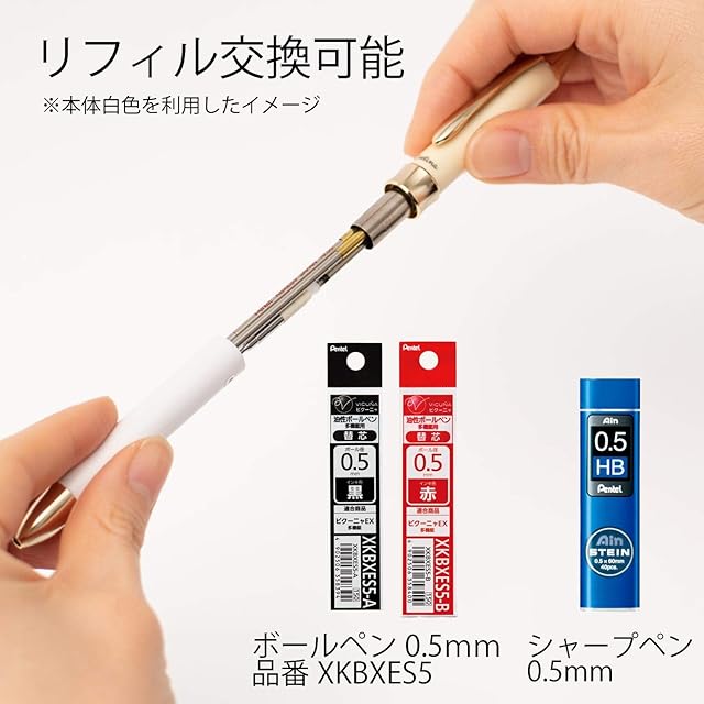 【特長】仕事にも使いやすいデザイン・1本にボールペン(黒赤)とシャープペンシルが内蔵
