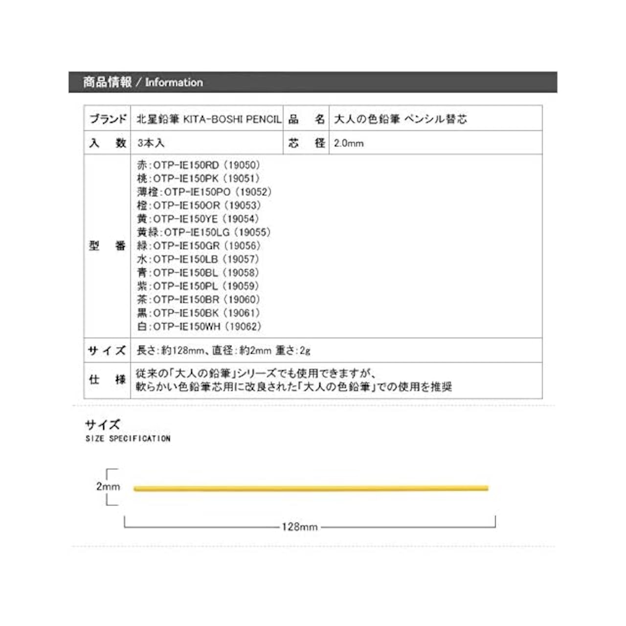 【商品説明】 大人の色鉛筆13の発売に合わせて替え芯も発売致します 国産高級2mm芯、色は赤、桃、薄橙、橙、黄、黄緑、緑、水、青、紫、茶、黒の12色に白を加えて13色になります。 色のりが良く、なめらかで折れにくい、最高の書き心地を味わえます。