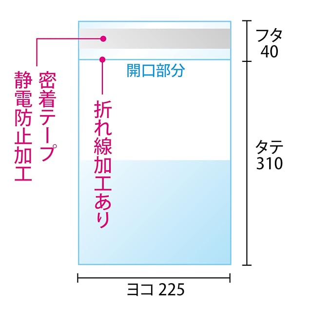 【サイズ】A4サイズ:225x310+40mm 【厚み】50ミクロン