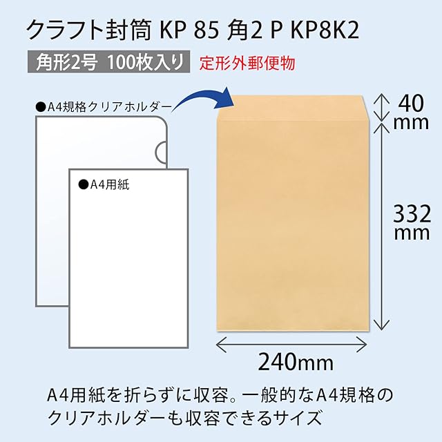 オキナ 封筒 クラフト封筒 A4 角形2号 茶色 100枚 KP8K2