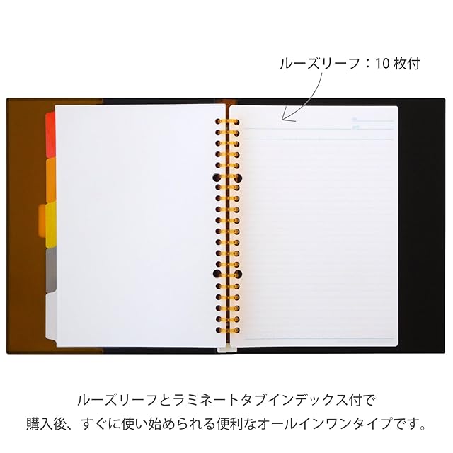 【本文】ルーズリーフ:10枚/ラミネートタブインデックス:5山/カラーポリプロピレンのポケット付