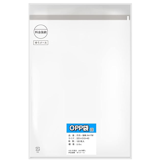 【内容量】100枚入 【その他特徴】料金後納・ゆうメールマーク印刷・静電防止加工・ペンで書込やスタンプ、シール貼付も可能。