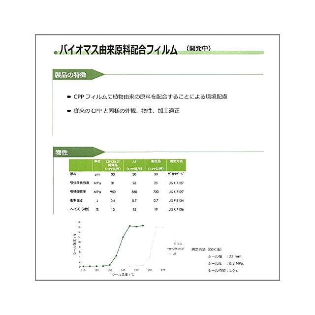 【特 徴】バイオマスCPP透明封筒は、植物由来の原料を配合したフィルムを使用しています。