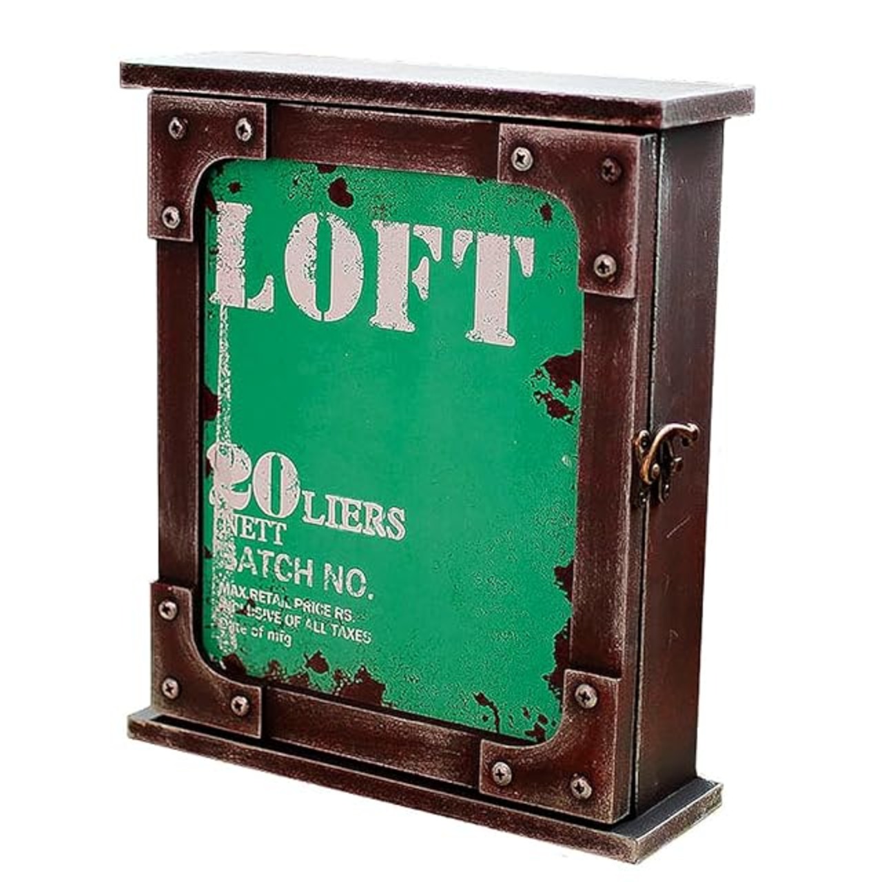 ビンテージ加工を施し、レトロでお洒落な感じに仕上がってます。 レトロなロックを開けるとと中には6個のアンティーク風フック!