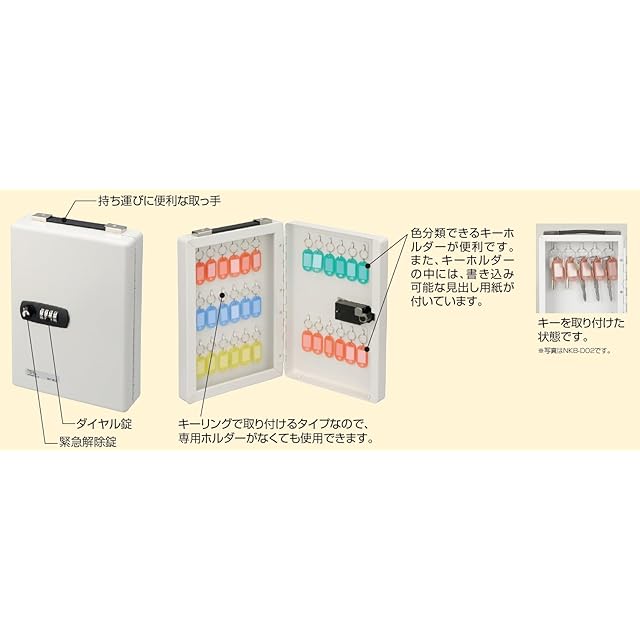 付属品:キーホルダー28個(赤9個・青9個・黄5個・緑5個)、シリンダーキー2本、木ネジ3本(約30mm)