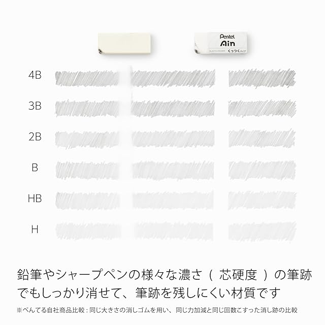 【特長】消しくずが消しゴムの先端にまとまり、つまんで捨てやすい「くっつくタイプ」