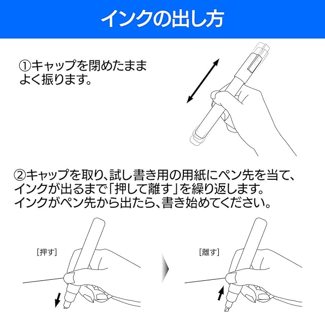 ※ご使用前に、目立たない場所で試し書きをして、マーカーとボードの相性をお確かめください。