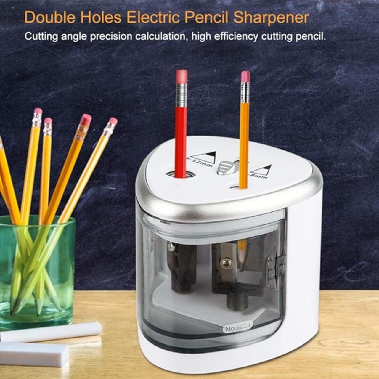 電気鉛筆削り 二重穴鉛筆削り 自動的 学校/オフィス/家庭で使用 使いやすい 切削角度精度計算 高効率切削鉛筆