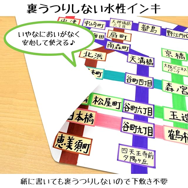 【特長3】不透明調インキで色のついた面や透明な面の上に書いてもきれいな発色
