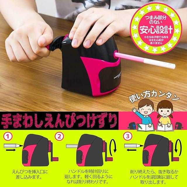 【特徴1】鉛筆を差し込むだけの鉛筆削り