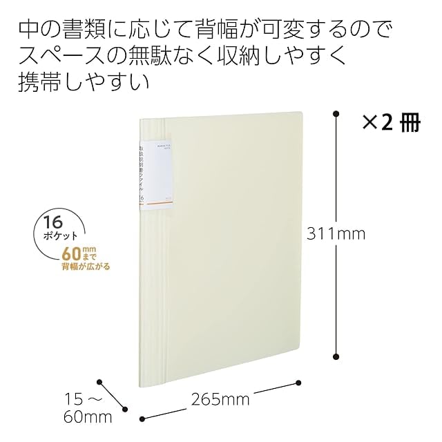 書類の量に応じて背幅が変わるノビータ、量販向け2冊パック