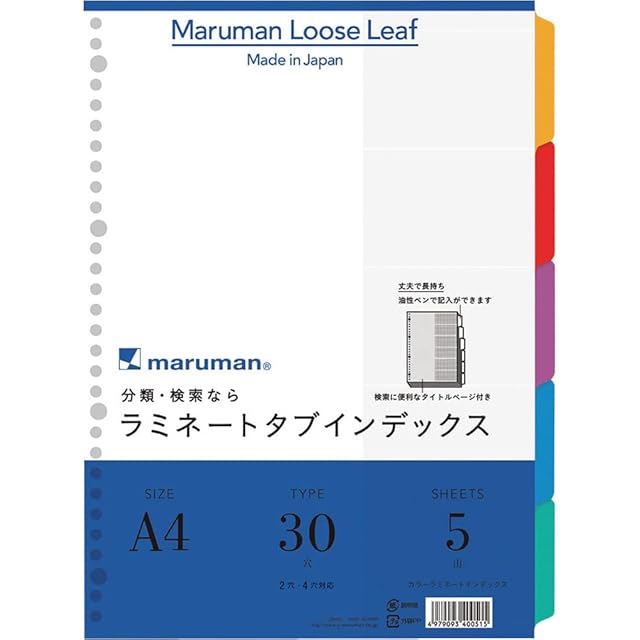 マルマン A4 インデックス ラミネート加工 5山 LT4005
