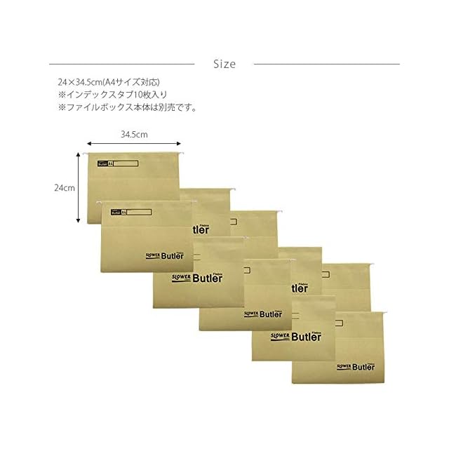 同ブランドの「FILE BOX Bulter」用にデザインされたファイルフォルダー。A4サイズの書類に対応してくれるうえ、同色の10枚がセット。