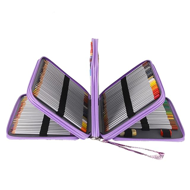 Sumnacon 色鉛筆ケース 大容量ペンケース 筆箱 鉛筆収納ケース シンプル文具ホルダー ペンシルホルダー 人気ペンボックス ジッパーペンケース 文具収納 消しゴム 学生用(鉛筆を含まない) (パープル, 200穴) | HiKaRiストア