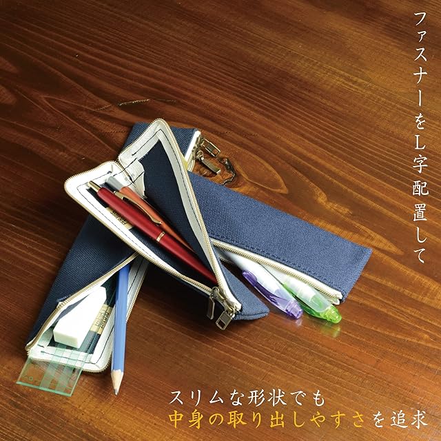 ペンケースの本体部に倉敷帆布を使用、革同様長く使えるスリムでシンプルな文具入れ