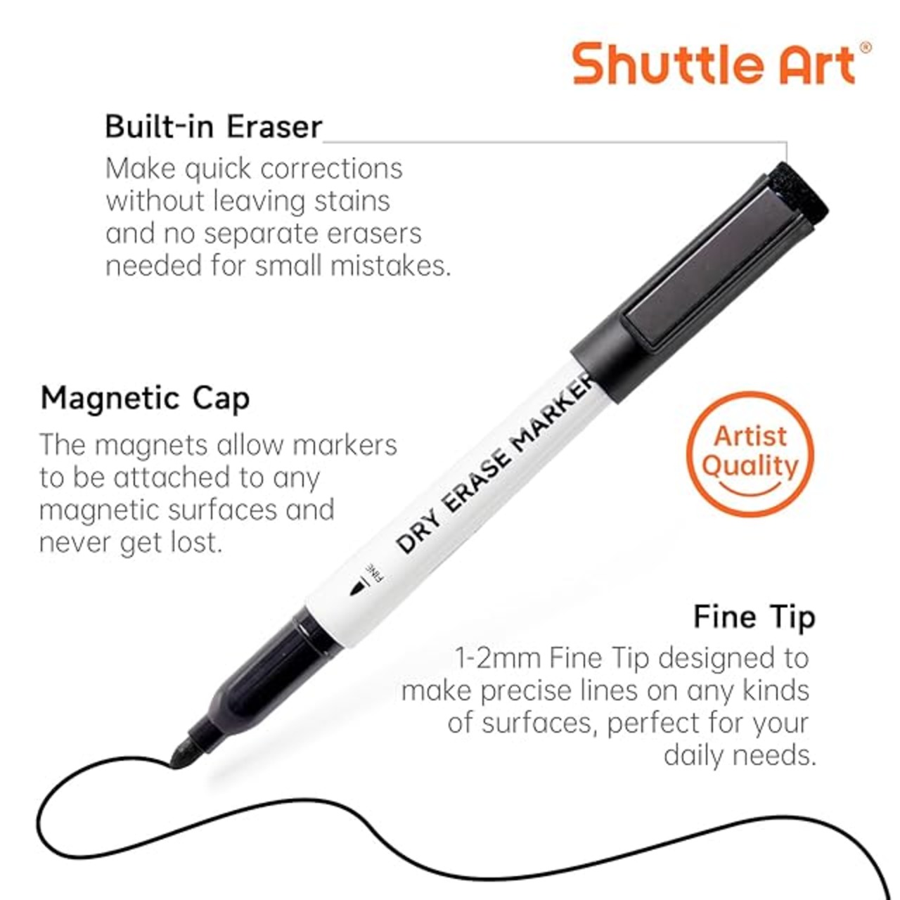 Shuttle Art 60 ブラック ホワイトボード マーカー マグネット付き イレーサー付き