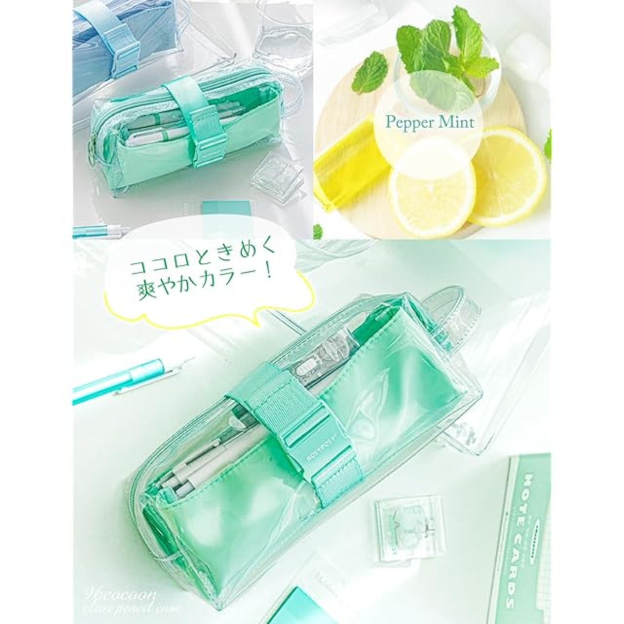 筆箱 小学生 女の子 ミニポーチ かわいい クリアペンケース クリアポーチ 化粧ポーチ おしゃれ小物入れ 中学生 高校生 大人 女子 透明 推し活 ライトグリーン (ペパーミント) | HiKaRiストア