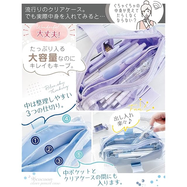【大容量】ペン20本以上入ります。 3つの仕切で中身の整理できます。中身がわかりやすく、文房具や事務用品のほか、旅行、修学旅行の洗面道具を整頓して収納するのにも便利。化粧ポーチや小物入れとしてもおすすめです。