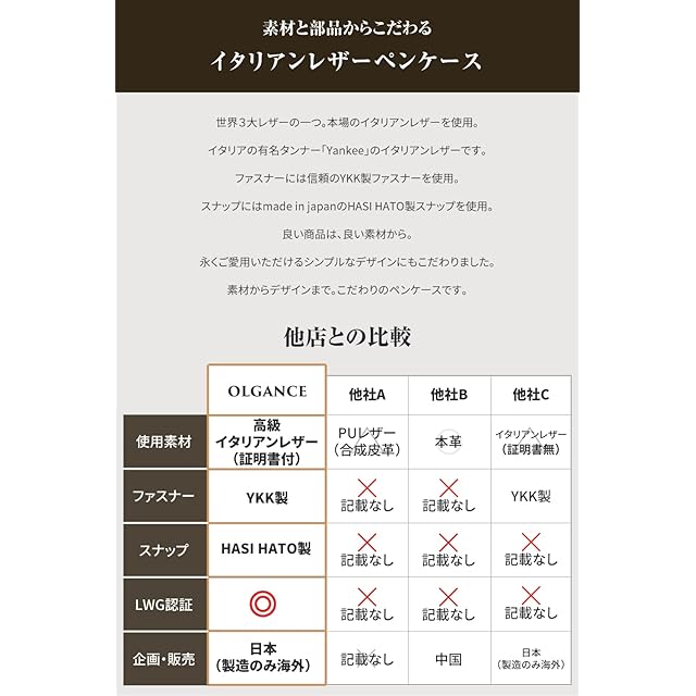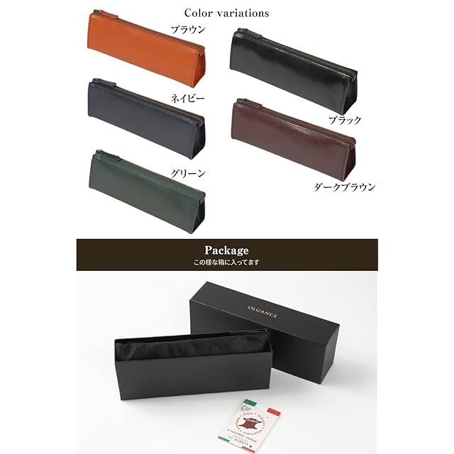 (OLGANCE) ペンケース 革 [大人のペンケース] シンプル 本革 イタリアンレザー 大人 おしゃれ 筆箱 レザー 三角 スリム ふでばこ ファスナー ペン 文房具 文具 (ブラウン)