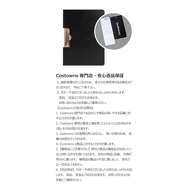 Costowns革 二つ折り バインダー クリップボード A4 クリップファイル厚 手 pu レザー 書類契約フォルダー 100枚A4資料用紙が収納可 事務用品 入職プレゼント ギフト ct-31 (横黒A)