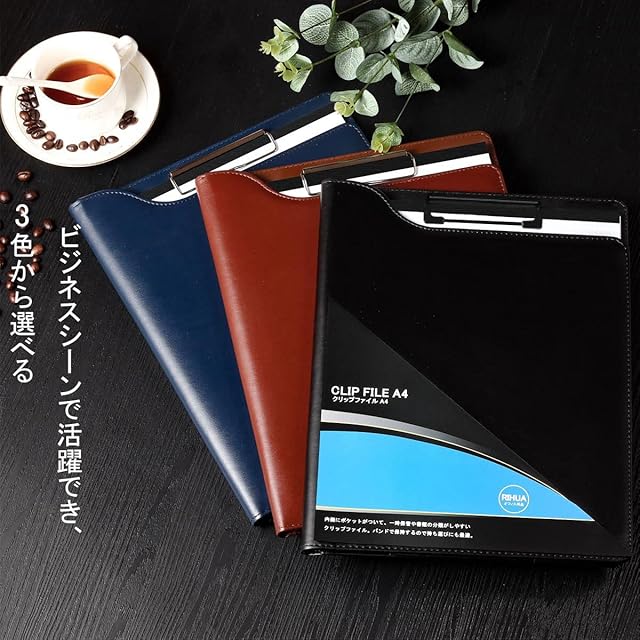 【RIHUA】 バインダー A4 クリップボード クリップファイル A4サイズの用紙に適用され バインダー ファイル 多機能フォルダー クリップボード a4 二つ折り PUレザー ビジネス バインダー (黒) | HiKaRiストア