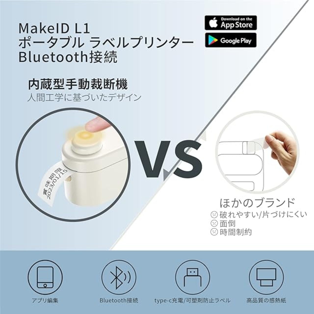 MakeIDラベルプリンター L1 HD ポータブル型 スマホ対応 ミニラベルプリンター Bluetooth接続対応 Android iOS