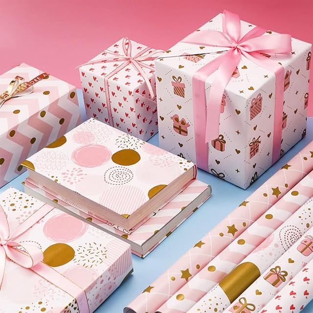 CCINEE 包装紙 ラッピング ペーパー ロールで運輸 300×43CM 包装 用 紙 大判 大きい おしゃれ かわいい デザイン プレゼント クリスマス (5枚, ピンク) | HiKaRiストア