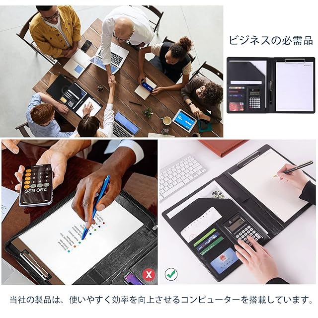 バインダー A4 クリップボード 多機能フォルダー 二つ折り PUレザー ビジネス バインダー 12位電卓付き 会議パッドクリップファイル、 デスクパッド署名フォルダ、A4書類フォルダー、二つ折り 書類フォルダー 名刺入れ ペンホルダー 多機能 事務用品 ビジネス オフィス用品 入職プレゼント (ブラック)