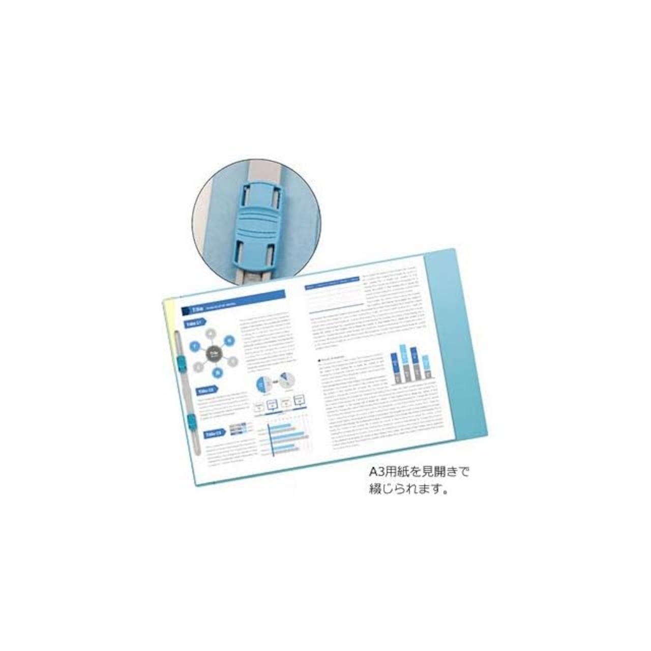 ●綴じ具が左端にあるので、書類を見開きでファイル可能。A3用紙を見開きで綴じられます。<br><br>●外寸:縦307×横230mm●背幅:15mm●綴じ厚:15mm●表紙厚:0.45mm●適正収容:A4のみ=150枚,A3のみ=70枚●穴数:2穴●穴間隔:80mm●材質:表紙=古紙パルプ配合率95%※収容枚数は一般的なコピー用紙(64g/m2)を綴じた場合の枚数です。綴じ厚10mmで約100枚の書類を収容できます。<br>