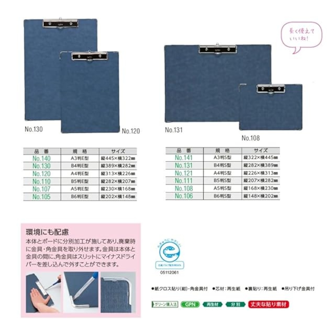 ライオン事務器 ボール用箋挟 A3E No.140 紺