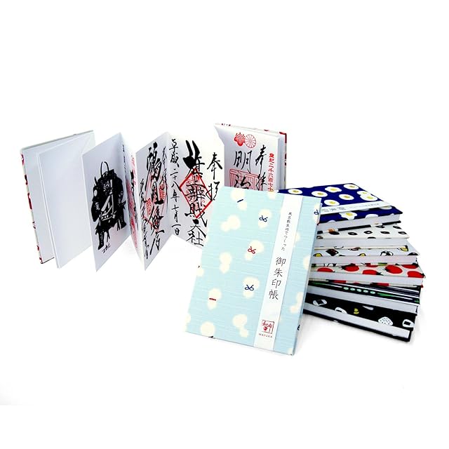 和柄の風呂敷をカバーにした御朱印帳。 中の紙は奉書紙という室町時代から公文書や儀礼用、神道の祝詞などに使われる厚みがありシッカリとした紙を使用しています。