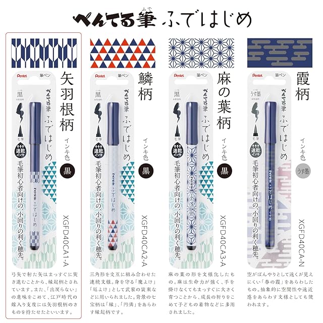 ぺんてる 筆ペン ぺんてる筆 ふではじめ 矢羽根柄 XGFD40CA1-A
