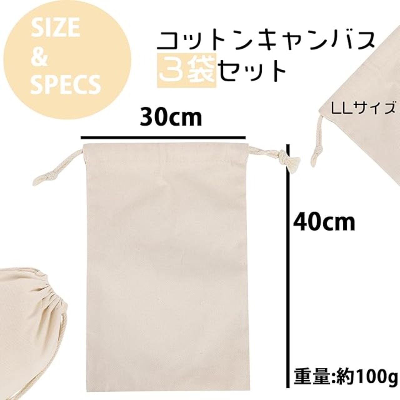 【商品詳細】本体:LLサイズ 3袋セット、材質:綿、サイズ:横幅30cm×高さ40cm