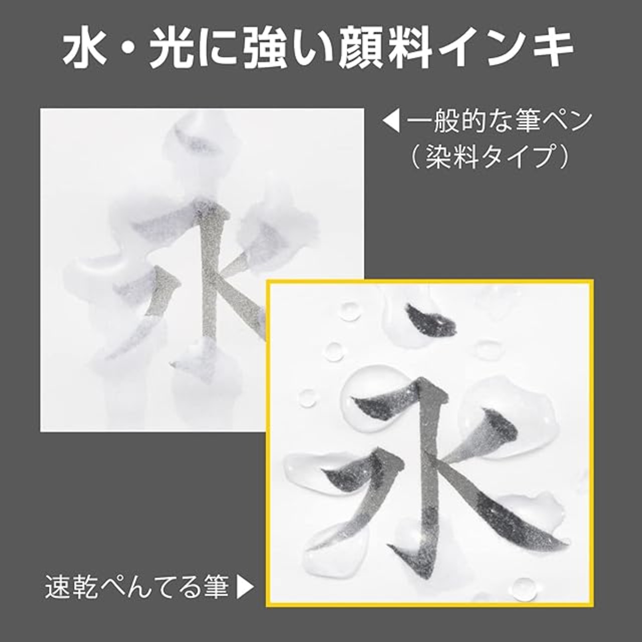 【特長】ぺんてる筆の毛は一本一本先が細く処理されており、穂先まで通っている。