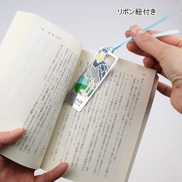 ハシビロコウが凛々しいデザインのステンドグラスのような栞。