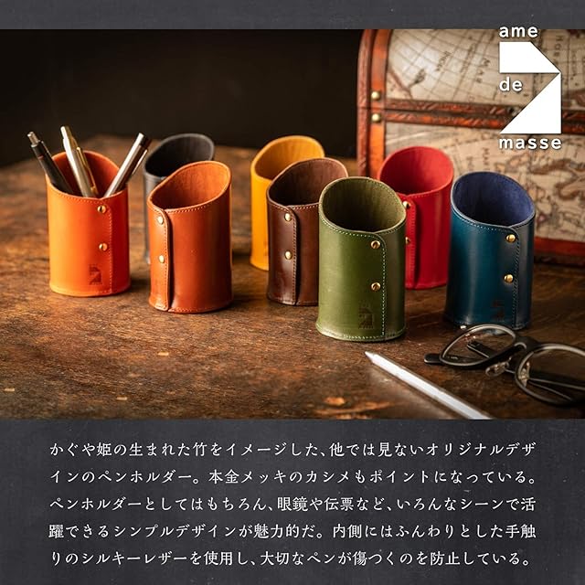 【素材】牛革/栃木レザー 【サイズ】直径66×高さ110/80 (mm) 【重量】34.2g ※ ハンドメイド製造の為、仕上がりに若干のムラがある場合がございます。※ モニター環境により色目が若干異なる場合がございます。