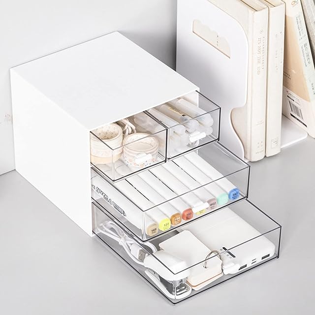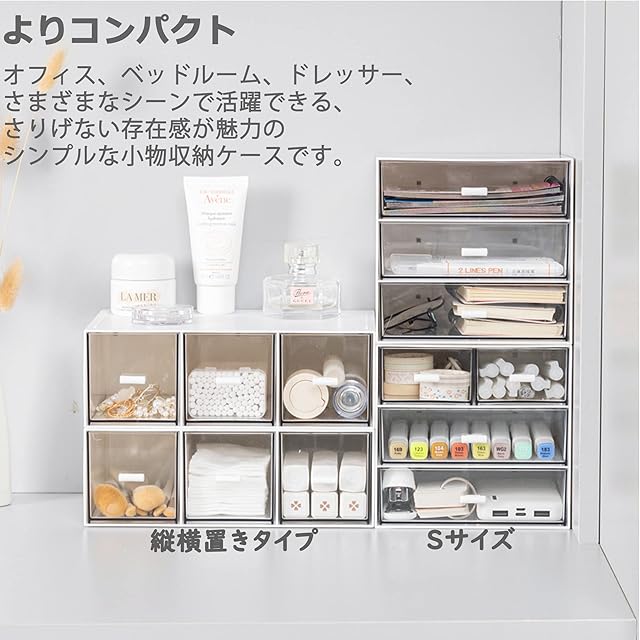 ★積み重ね可能な分別型収納ケースで賢く整理・整頓できていると心が落ち着き、仕事の効率がアップします。デスクの上で場所を取らない卓上収納ケースです。デスク周りの小物等の整理・収納に最適です。