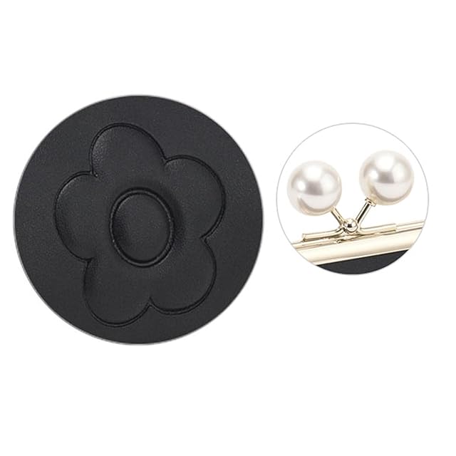 MARY QUANT(マリークワント) エンボスデイジーパール ガマ口ペンケース H6.5×W21×D5.5cm、パール直径:1.7cm ブラック