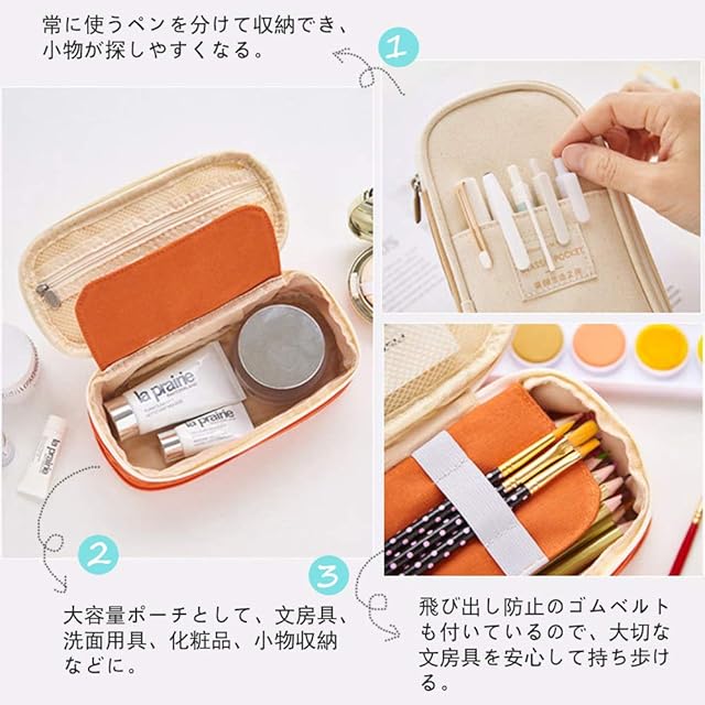 多機能ポーチの用途:ペンケースとしてはもちろん、モバイルポーチとして、コスメポーチとして、多様に使えるので用途によって色分けして揃えるのもおすすめです。