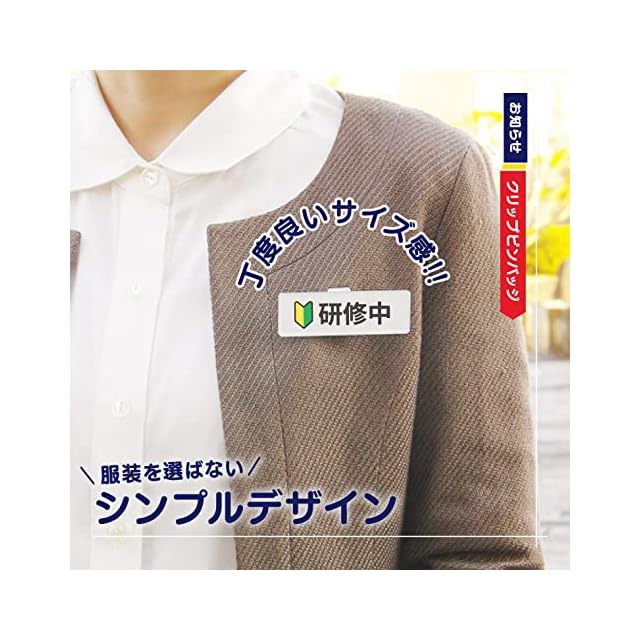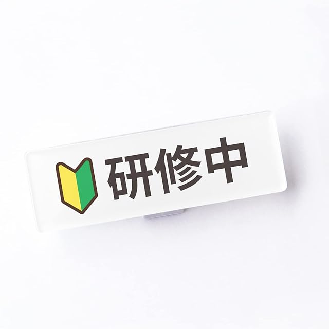 研修中であることを明確にするバッジ。クリップと安全ピンのどちらでも取り付けできます。
