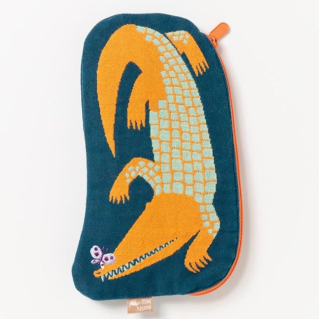 【MiWさんの不思議な世界が広がります】<br>ゆっくりとした世界に暮らす生き物たちのカワイイ形のポーチです。ちょっと不思議であたたかな絵とカラーリングが、絶妙なバランスです。一つ一つの柄にストーリーがあり、その世界観も楽しめます。表柄、裏生地とファスナーのMiWカラー・ハーモニーが新鮮です。<br><br>【少ししっかりめに織ったガーゼ生地だから丈夫】<br>ファスナーを開けるとパッと飛び込んでくるビビッドな色が新鮮です。ペンポーチやちょっとしたコスメポーチに。ジッパー部分がL字になっているので、物の出し入れがしやすいです。<br><br>【かわいいので見せたくなるポーチ】<br>毎日楽しみながら・・アイデア次第で使い方いろいろ。文具、メモ帳などをポンと入れたり、携帯電話もすっと入れたり、ハンカチやティッシュなどまとめてすぐに出せてとっても便利。バックの中の整理整頓に欠かせないポーチですが、かわいいのでみんなにも見せたくなります。丸みを帯びた形も可愛いですね。<br><br>「ドードーと木の実」、「ウサギと白詰草」、「ワニと蝶々」の3種類からお選びいただけます。他デザインもあります。<br><br>【サイズ】22×13cm<br>【素材】表地:綿100%、裏地:ポリエステル100%<br>【生産国】中国