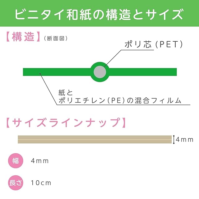 ビニタイ 和紙 (ポリ芯) 未晒 クラフト 4mm × 10cm カット品 1,000本入り QRH100-9NG 共和 結束 和風 ナチュラル 針金無し 安心 安全 ラッピング タイ | HiKaRiストア