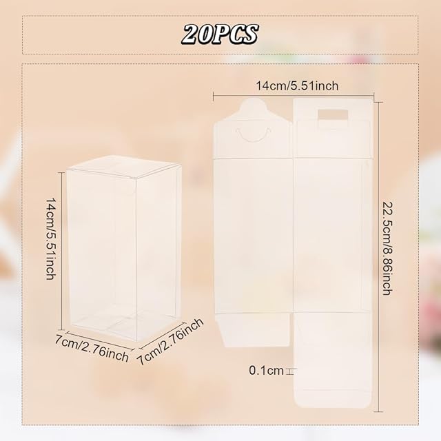 お得な量:20個クリアボックス;サイズ:5x5x5cm。展開サイズ:15.7x10x0.1cm。