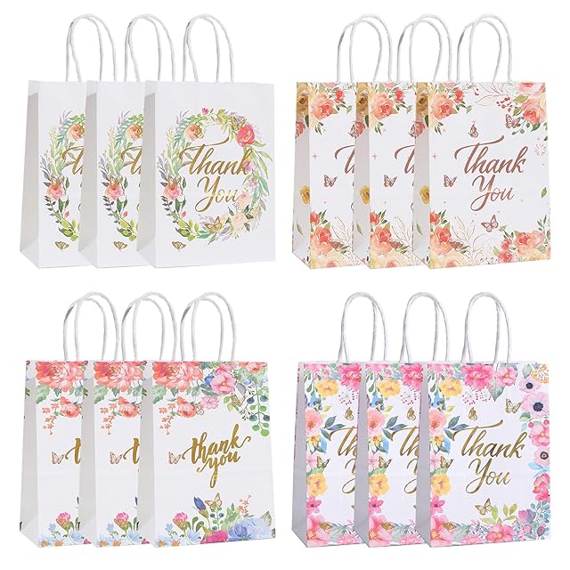 このBTtimeの紙袋は、華やかでスタイリッシュな花柄のデザインで、商品をより引き立てる魅力的な存在です。両面には「Thank You」の文字が印刷されており、使用時には中身が透けることもありません。厚手の紙を採用しているため、少々重い物を入れても安心です。持ち運びも便利な丸紐タイプの持ち手が付いており、誕生日、バレンタイン、母の日のプレゼント包装に最適です。サイズは21x15x8cmで、12枚入の4種類がセットになっています。